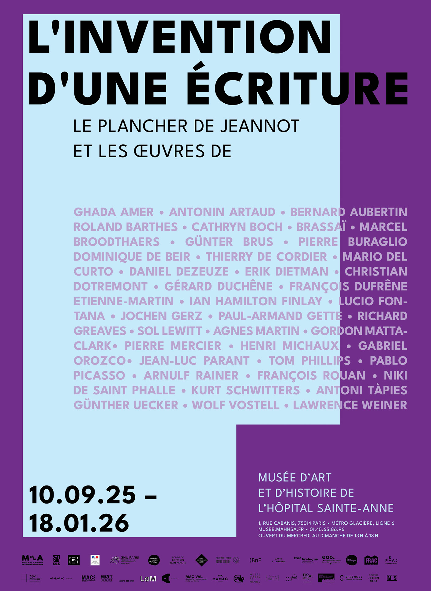 Après avoir été présenté sous un prisme historique et archéologique, le Plancher de Jeannot fait l’objet d’une nouvelle lecture au Musée d’Art et d’Histoire de l’Hôpital Sainte-Anne (MAHHSA). À partir du 10 septembre 2025, l’exposition « L’invention d’une écriture. Le Plancher de Jeannot et les œuvres de […] » s’attache à dépasser les catégories traditionnelles de l’art et de l’écrit, pour interroger ce qui relie les œuvres au-delà des étiquettes et des disciplines.